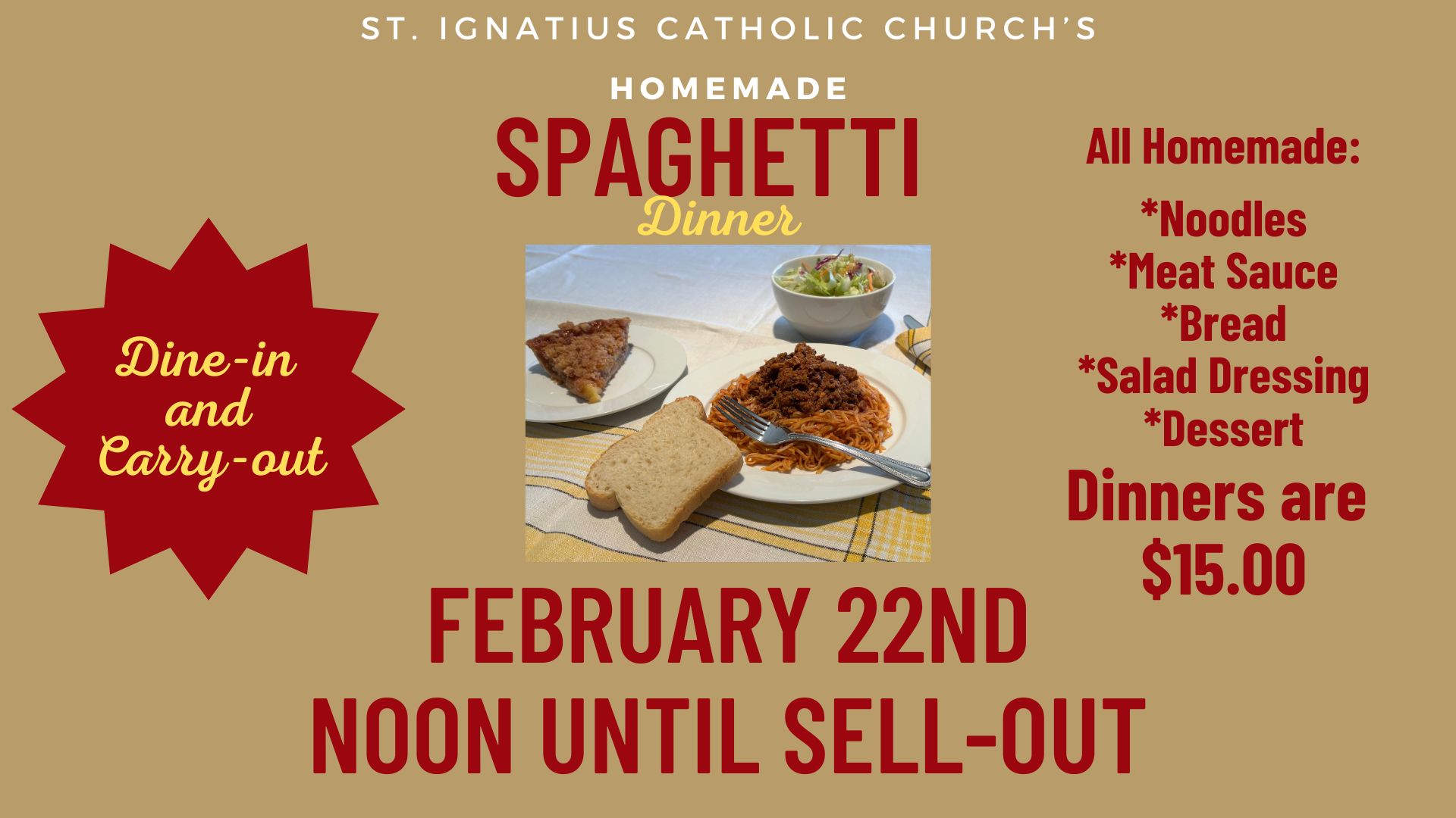 Just a reminder the Spaghetti Dinner will be this Sunday Feb. 22 starting at noon. Tickets are $15. We need homemade desserts! Please bring them in either on Saturday or…