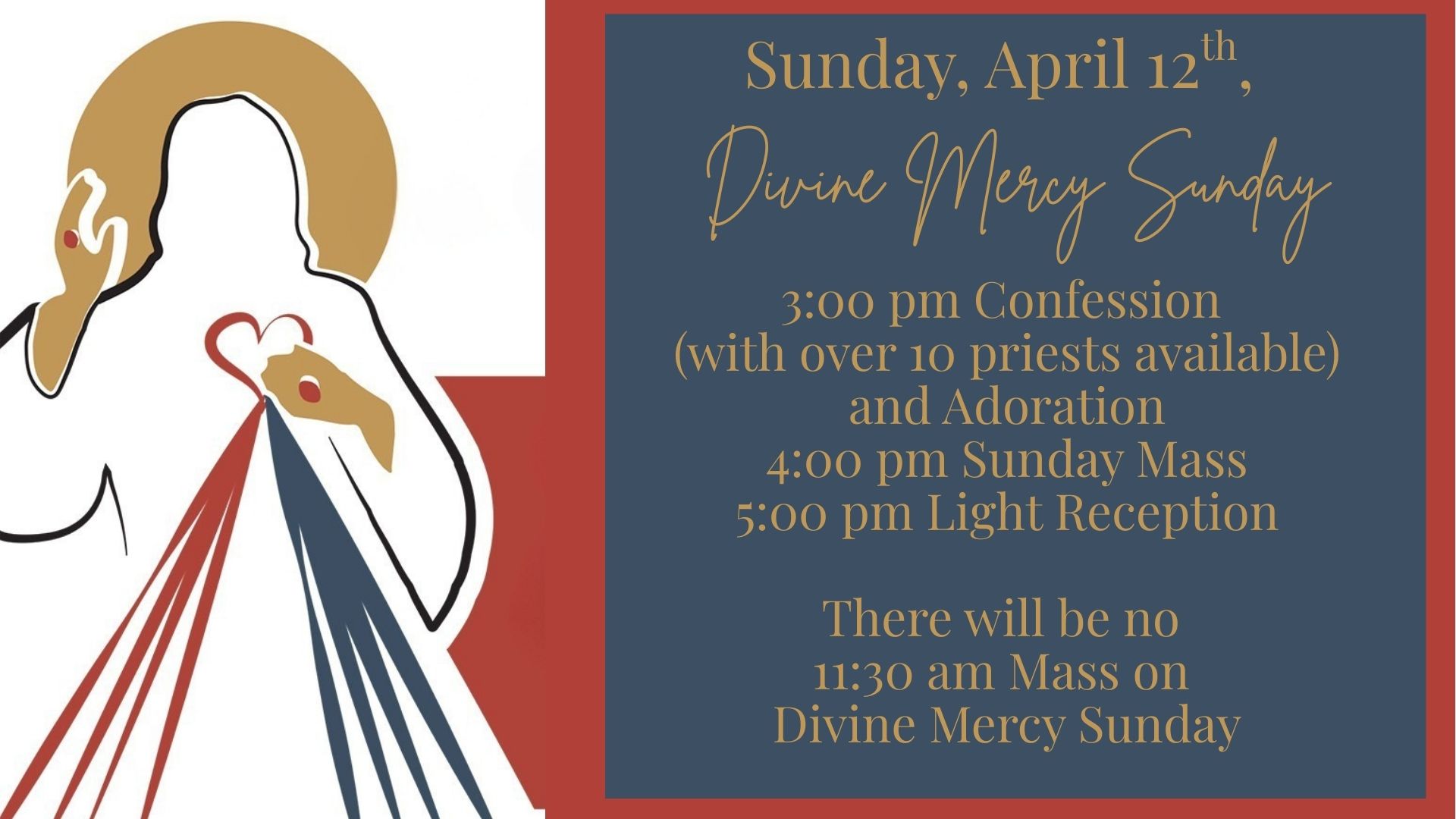 Christmas Mass Schedule: December 24th 4:00 pm & 10:00 pm, December 25th 11:00 am